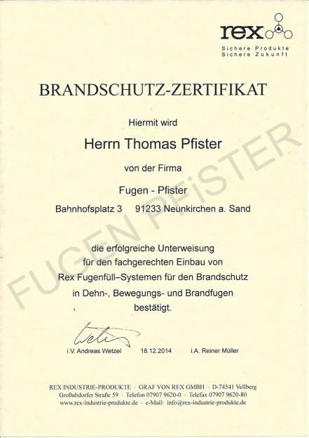 Zertifikat REX Brandschutzfüllsysteme