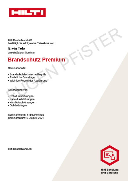 Zertifikat Brandschutz Premium